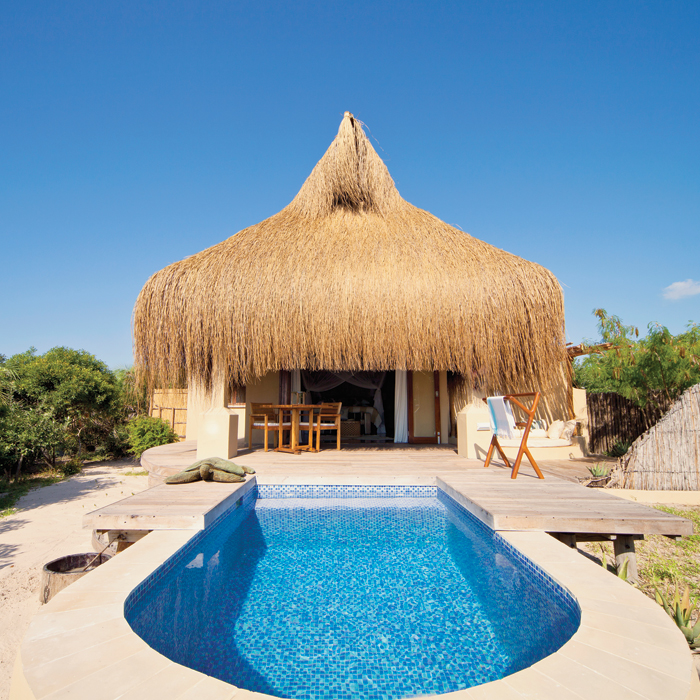 Dulini is a tranquil haven on the banks of the Mabrak River in the Sabi Sand Reserve. Shaded by ancient Ebony and Leadwood trees, the camp’s peaceful atmosphere is enhanced by the symphony of bird song. An endless passage of wildlife adds to the allure. Complete with private plunge pools, six exquisite thatched suites grace the banks of the riverbed. Spacious interiors epitomize romance, with canopies of mosquito nets and beautiful bathrooms. The main lodge, resplendent with deep couches spills onto a cool veranda, with views to the wilderness beyond. Retreat to the extensive library for quiet contemplation or observe the movement of wildlife through the trails around the camp from the cantilevered deck. It is not uncommon to secretly witness an elusive leopard from this vantage point. The welcoming ambience of laid back luxury creates a place of conversation and laughter.3. Azura Benguerra Island